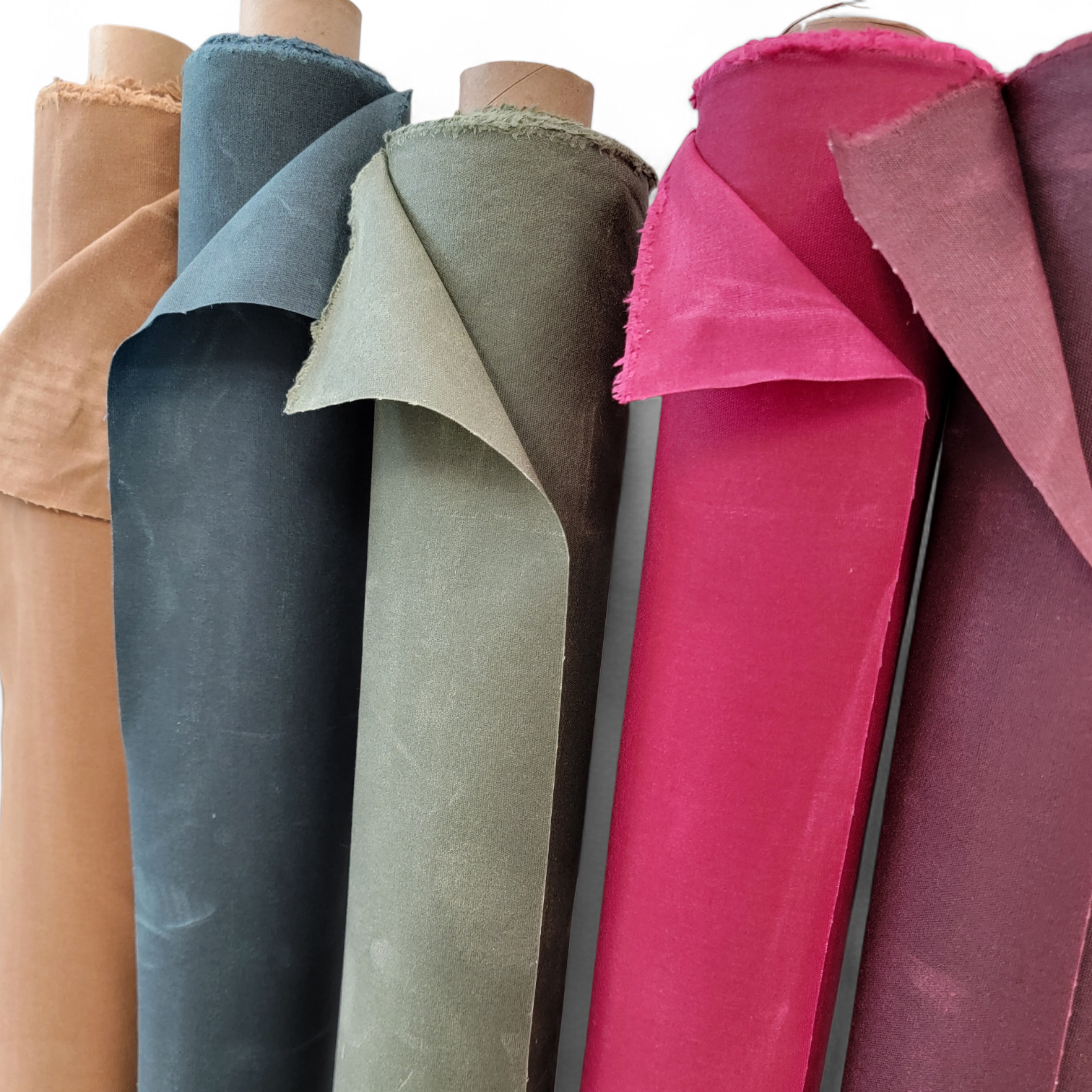 Durable, water-resistant fabric made by coating a dyed 8oz cotton canvas with wet wax. This process creates a barrier that repels moisture, dirt, and wear. Used for outdoor gear, tote bags, jackets and anything needing a water-resistant rugged appearance. Appearance can be refreshed with a hair dryer.
