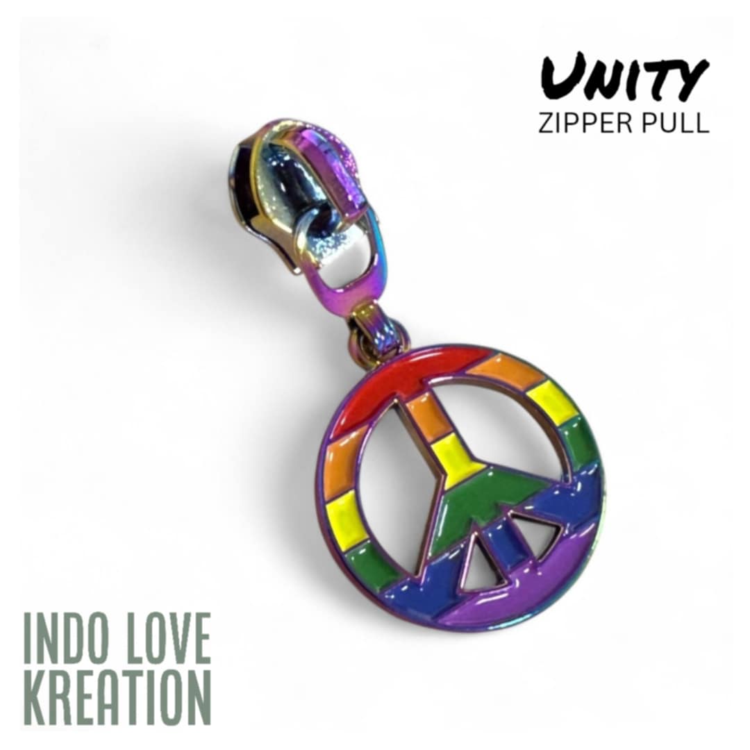 INDO LOVE KREATION Exclusive custom design the UNITY zipper pull. Beautiful quality enamel painted, double-sided, rainbow metal base.