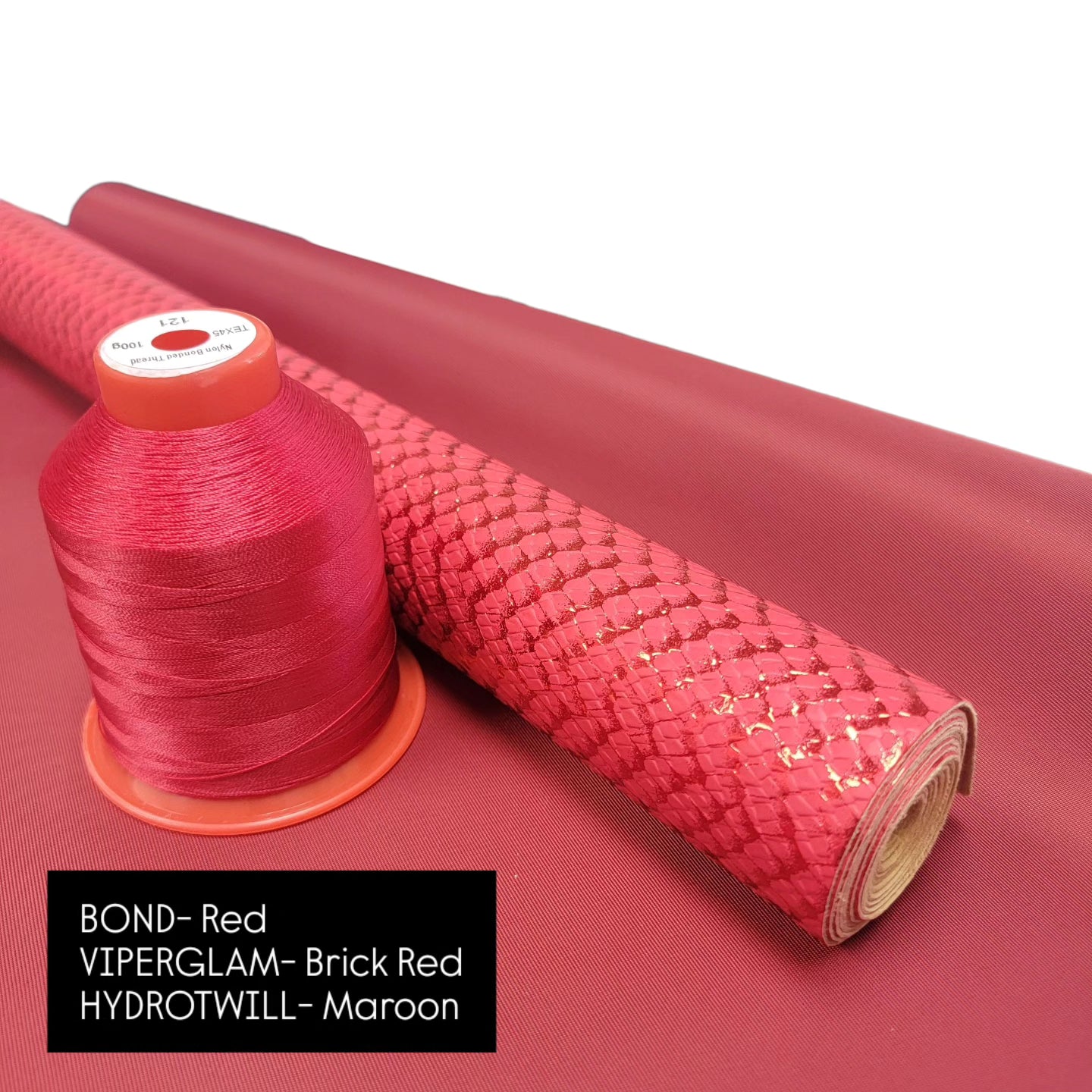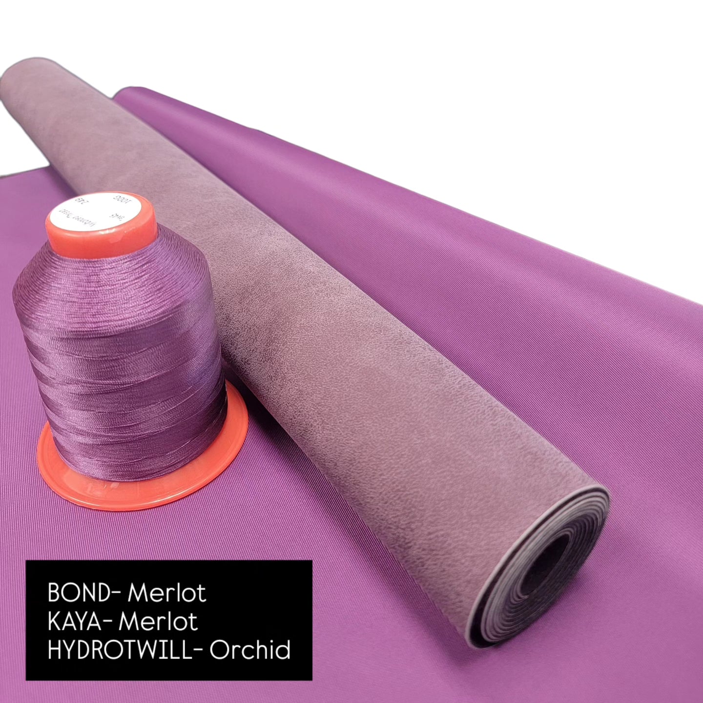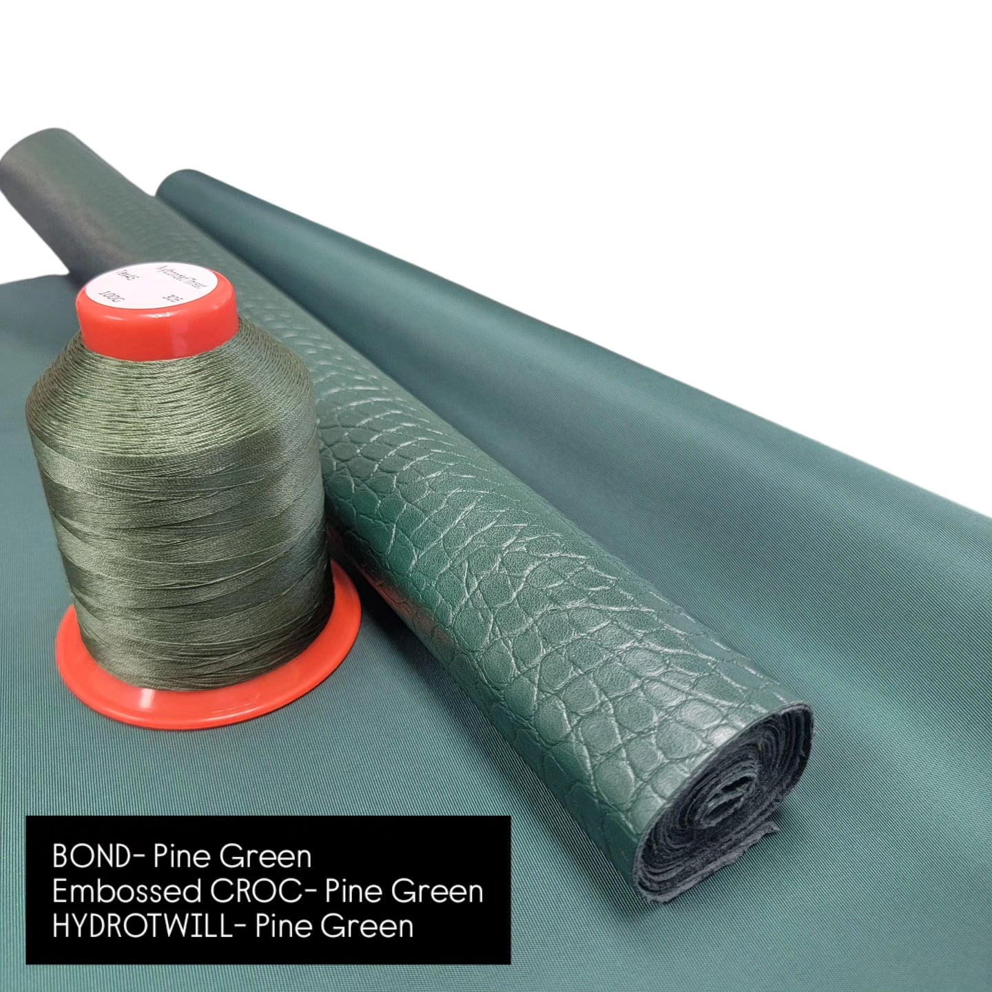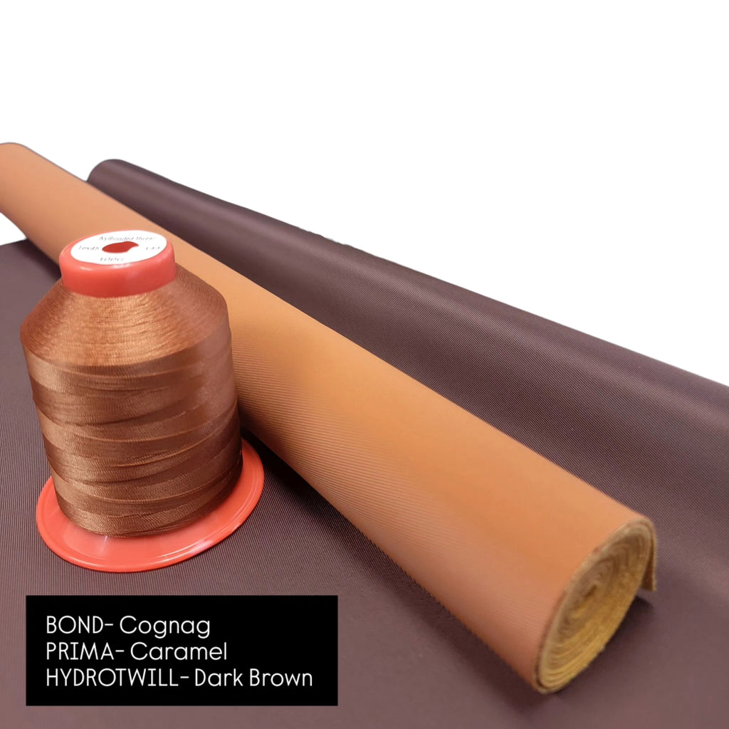 Select your thread color and size from the options provided. The matching faux leather and HYDROTWILL fabric will automatically be included based on the color theme.