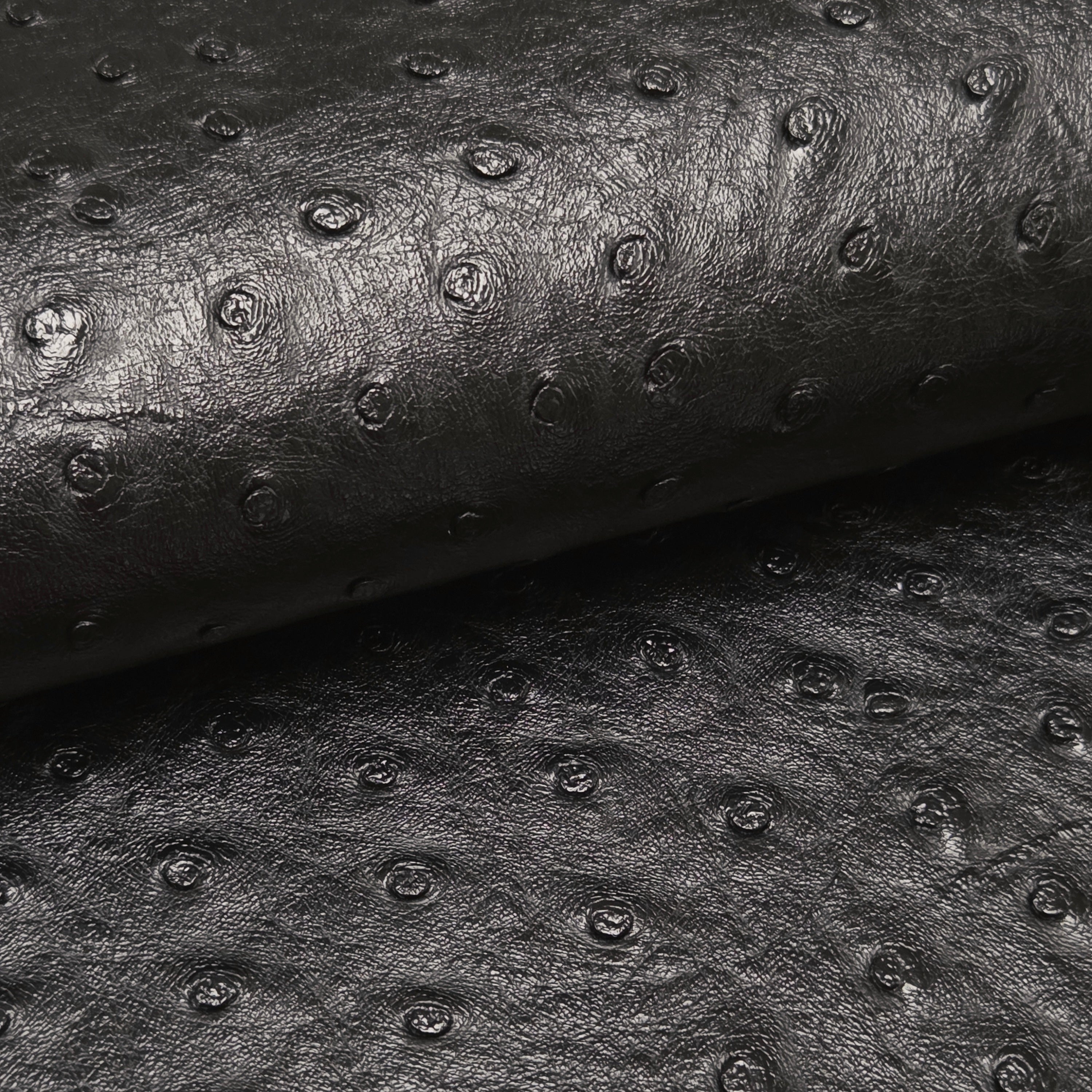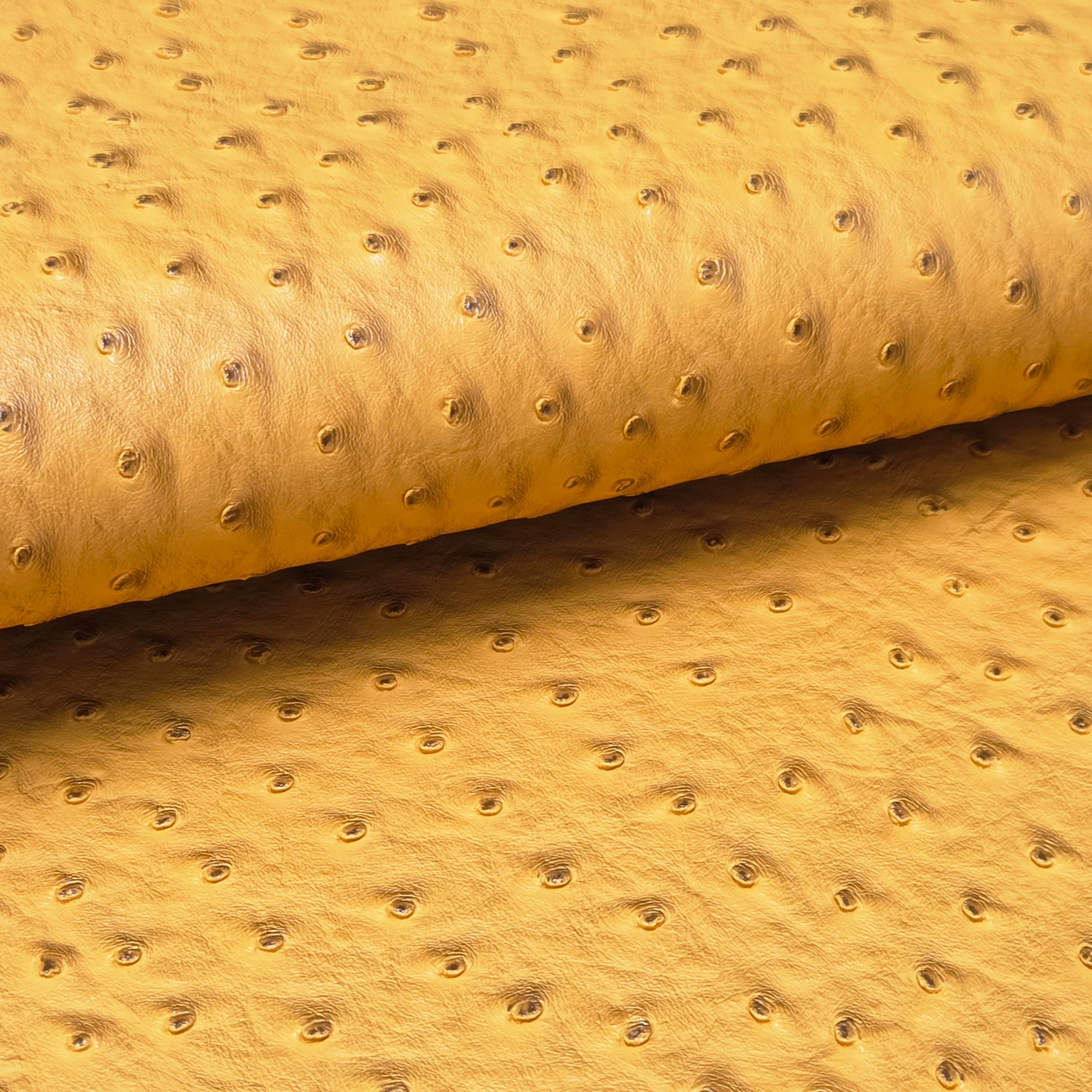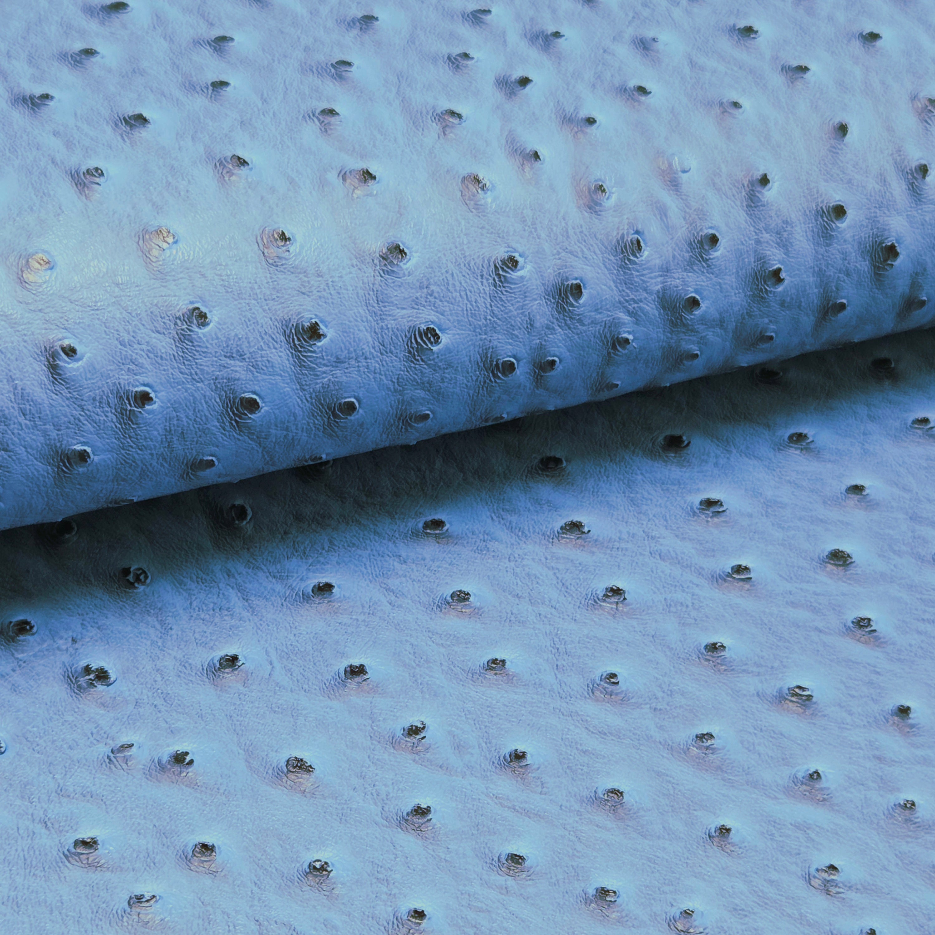 Embossed ostrich-texture faux leather featuring a dimensional quill pattern with consistent grain throughout. Medium body with structured feel—ideal for projects requiring stability while maintaining manageable flexibility.